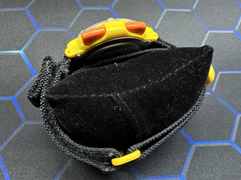 時計用ではなかったのですが、小物入れに付属していた小さなクッションを利用して、腕時計をパソコンのモニタ台の上にのせていました。